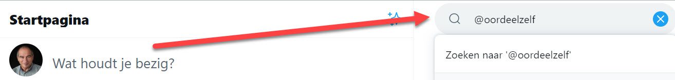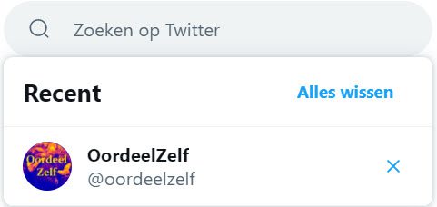 Stap 1: Ga in Twitter naar “Zoeken”  en type “@oordeelzelf”.